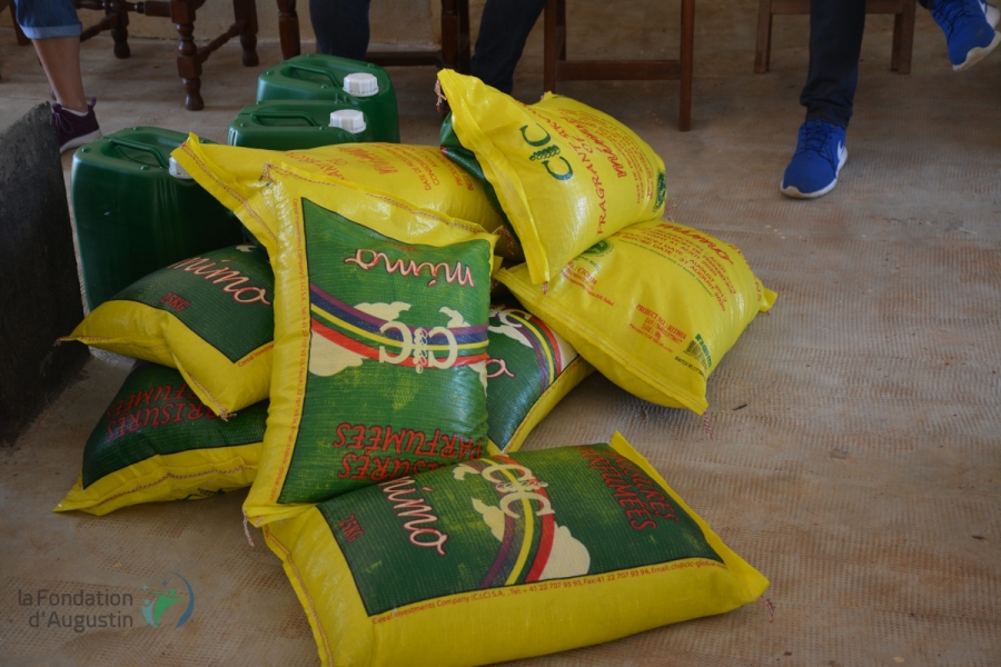 La Fondation d’Augustin donated 100 Kg of rice and 40L of cooking oil for the N'Gattakro school canteen in order to provide meals preparation support in order to diversify lunchtimes.