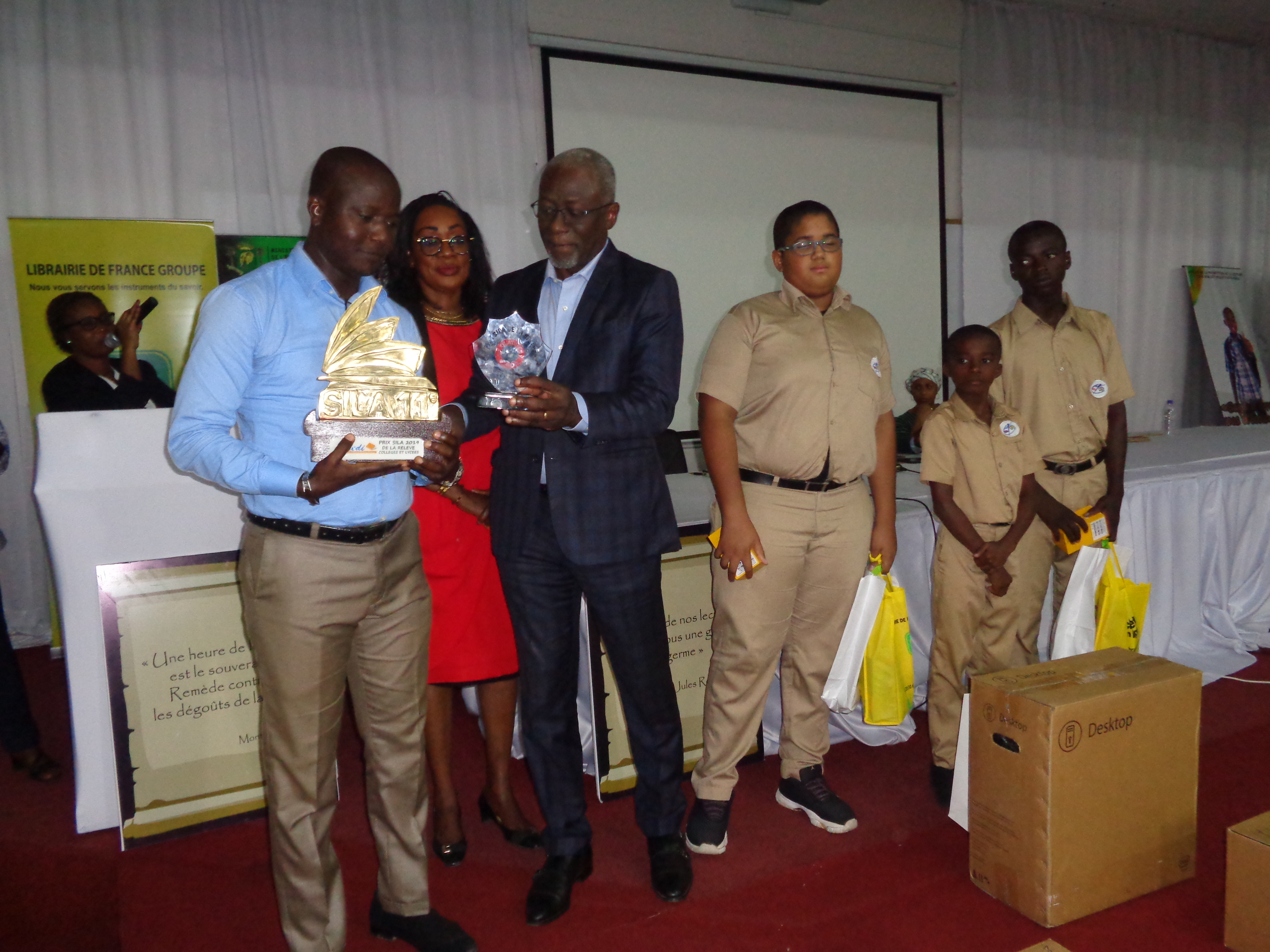 Dans le cadre de la cérémonie de remise de prix aux lauréats du « PRIX SILA DE LA RELEVE » le 27 Mai 2019 organisé par Le Service de la Promotion de la Lecture et des Bibliothèques Scolaires (SP-LBS), partenaire de la Fondation, à Abidjan, La Fondation d’Augustin a fait don de plus de 1000 livres (ouvrages littéraires et manuels scolaires) à 8 écoles publiques : 5 au secondaire (Lycée Municipal d'Abobo, Lycée Municipal de Marcory, Collège Moderne du Plateau, Collège Guchanrolain de Yopoungon, Groupe Scolaire Notre Dame de Lourdes de Yamoussoukro ) et 3 au primaire (Groupe Scolaire de Sogefia1 de Yopougon Centre, EPP Magic Système de Marcory, Groupe Scolaire Rosier 5B d’Attoban). De plus, 6 smartphones ont été remis aux lauréats.